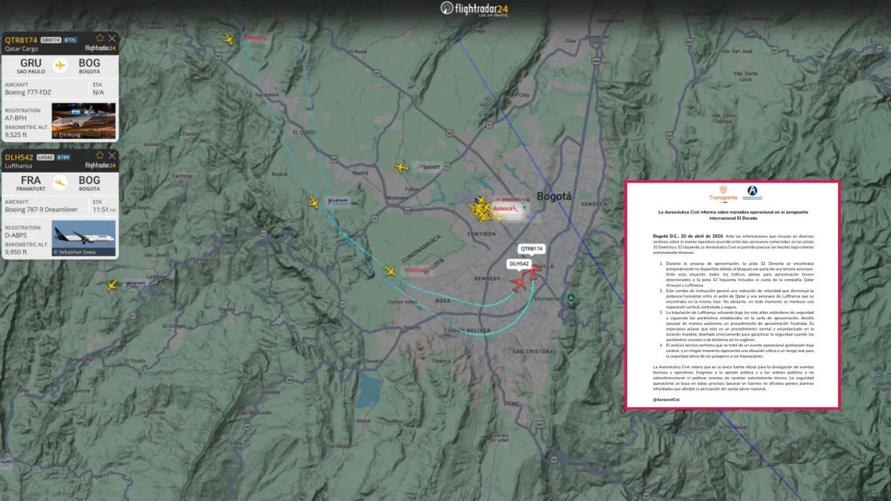 Frente al episodio más reciente, la Aeronáutica Civil entregó una explicación técnica en la que descarta cualquier riesgo para la operación. Según la entidad, la situación se originó porque una de las pistas estaba temporalmente no disponible, lo que obligó a redireccionar los vuelos a otra pista, reduciendo la distancia horizontal entre las aeronaves, aunque, según precisan, “en todo momento se mantuvo una separación vertical controlada y segura” .