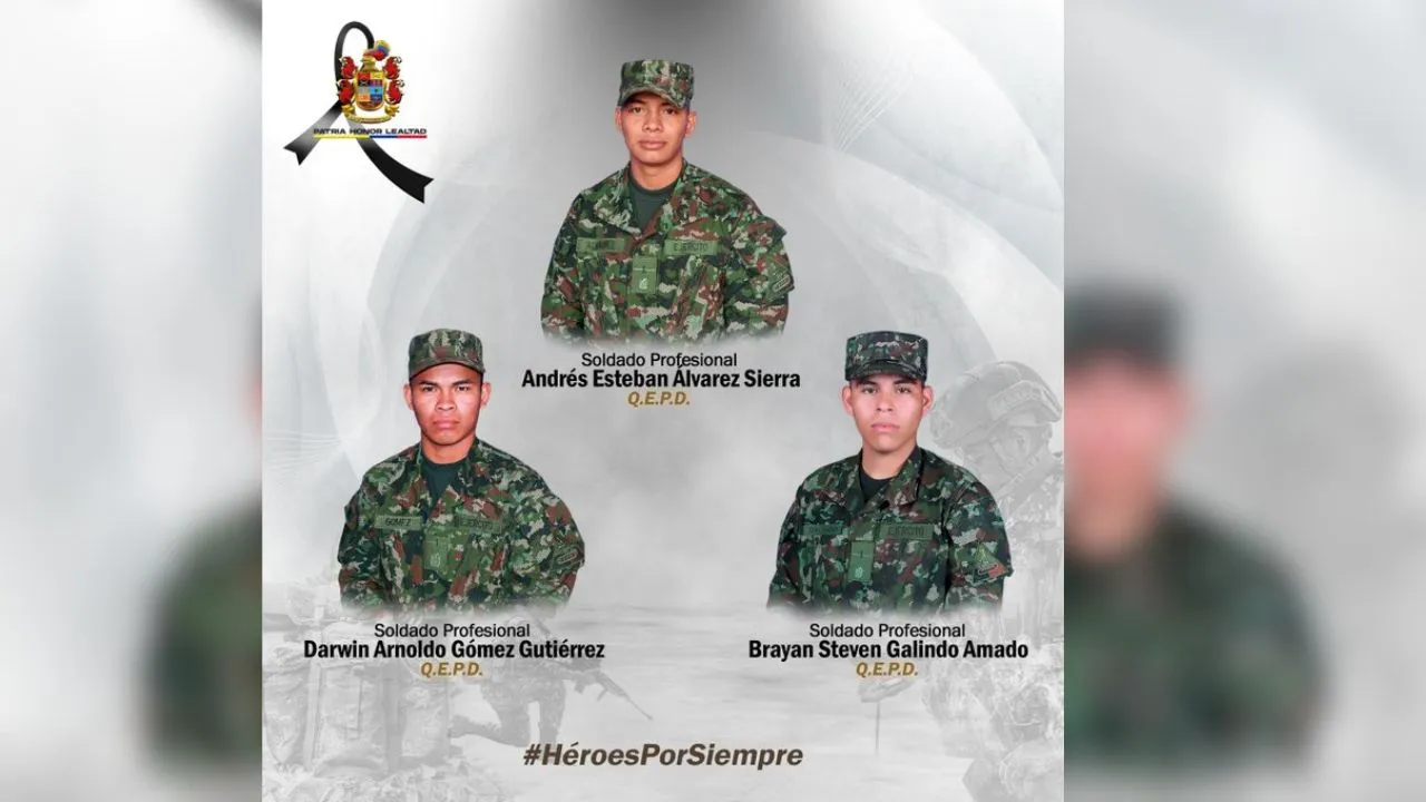 De acuerdo con información entregada por el comando de la Vigésima Tercera Brigada, las víctimas fueron identificadas como Andrés Esteban Álvarez Sierra, Darwin Arnoldo Gómez Gutiérrez y Brayan Steven Galindo Amado, quienes participaban en despliegues operacionales en el área.