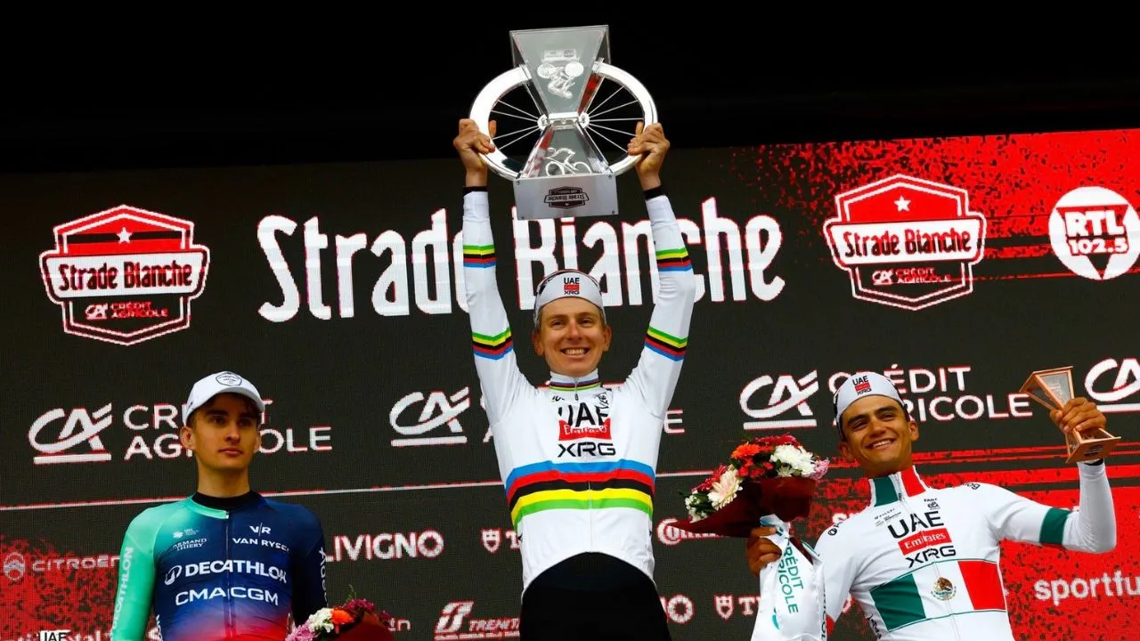 Pogacar destrozó el pelotón para ganar la Strade Bianche; Diego Pescador, brillante