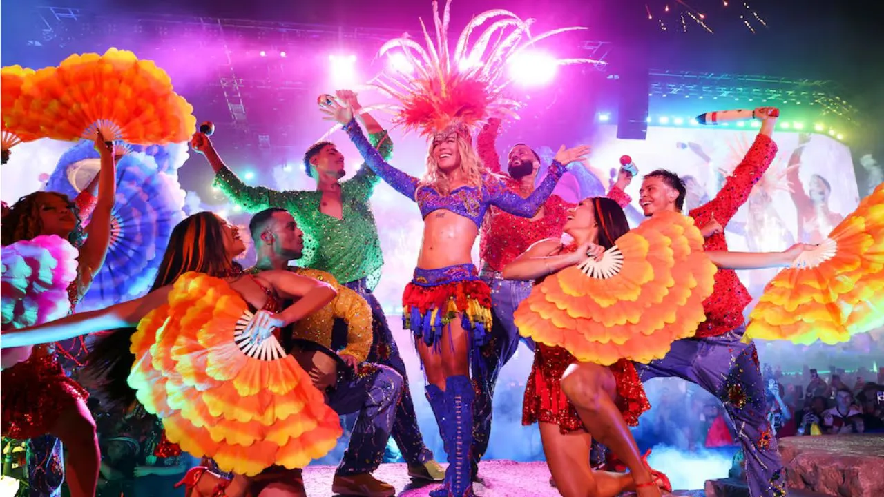Karol G llevó su propuesta artística más allá del reguetón y el pop latino. En escena se mezclaron ritmos de cumbia, bachata y sonidos urbanos, acompañados de una producción de gran escala que incluyó estructuras móviles, pantallas gigantes y una narrativa visual inspirada en paisajes naturales.
