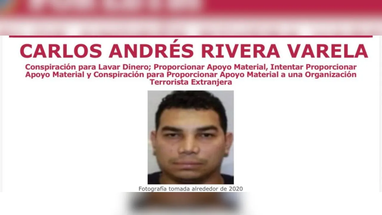 El Federal Bureau of Investigation (FBI) mantiene vigente una orden de captura contra Rivera Varela por cargos de conspiración para lavado de dinero y por presunto apoyo material a una organización terrorista extranjera. La acusación fue formalizada el 28 de octubre de 2025 por el Tribunal Federal del Distrito Este de Nueva York.